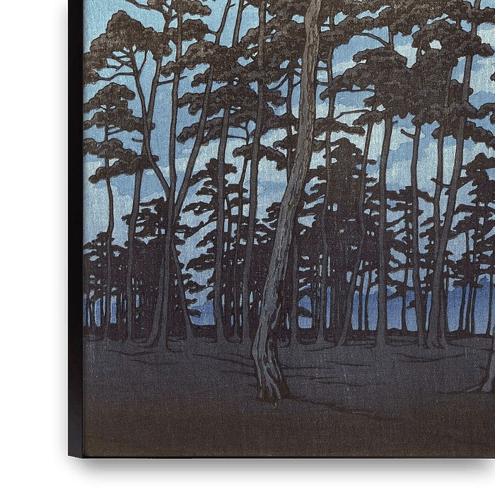 À propos de ‘Hoge bomen tegen een blauwe lucht, Hikawa park in Omiya, Japan, Kawase Hasui, 1930’ par Roger VDB