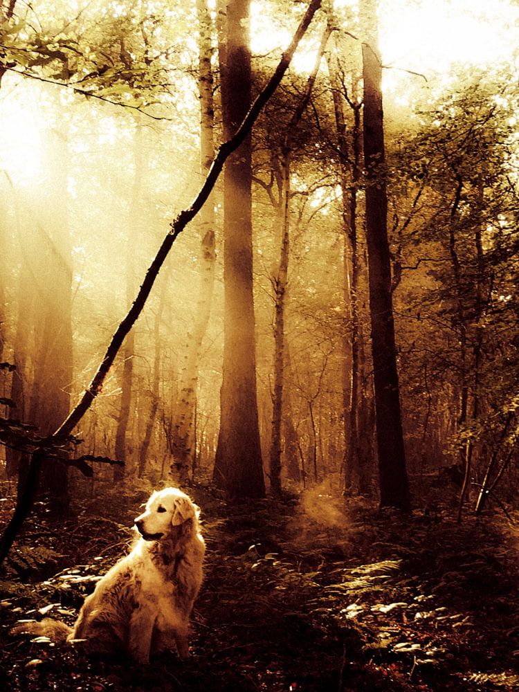 Pjotr, mijn golden retriever, tijdens een heerlijke herfstwandeling in het bos.