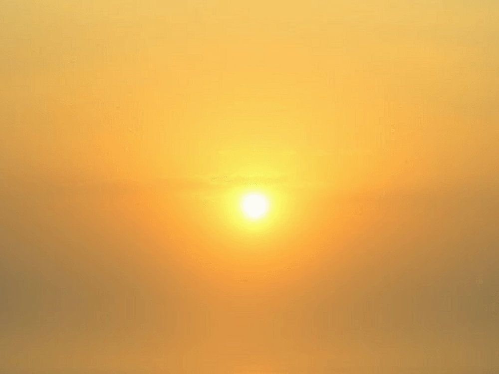 Une image à couper le souffle qui capture le moment serein du lever du soleil sur un vaste océan calme. Le soleil, un orbe de lumière, jette une lueur dorée dans le ciel et se reflète de manière éblouissante sur les douces vagues en contrebas, créant une scène tranquille et envoûtante. La lumière douce et diffuse confère à l'ensemble de la composition une qualité onirique et éthérée.
