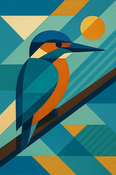Achetez cette œuvre d'art d'oiseau Illustration géométrique d'un martin-pêcheur. par Johannes sur toile, aluminium, ArtFrame ou photographie (encadrée), impression d'art en haute qualité et tout format.