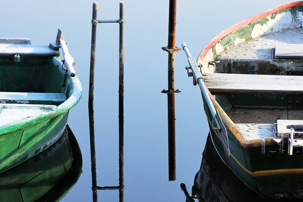 Image symbolique : Bateaux à rames amarrés en hiver par Udo Herrmann