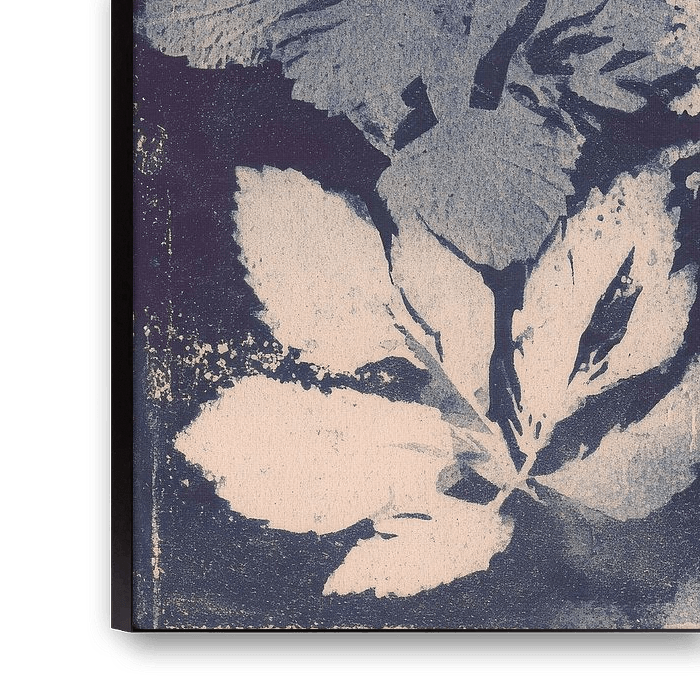 Cette œuvre d'art présente une élégante composition de feuilles et de tiges fleuries, capturées dans une palette de couleurs bleues profondes. Les silhouettes légères semblent s'illuminer sur le fond sombre, comme si elles étaient touchées par la lumière de la lune. La structure de chaque feuille et de chaque fleur est subtilement visible, faisant ressortir les détails naturels. L'image a quelque chose de rêveur et d'intemporel, comme le souvenir d'une paisible journée d'été préservée en couleur. Les contrastes entre le clair et l'obscur apportent calme et profondeur, tandis que les textures douces confèrent à l'œuvre une qualité presque tangible. Cette impression est une ode à la simplicité, à la nature et au silence - parfaite pour ceux qui aiment l'art serein avec une touche de mystère.