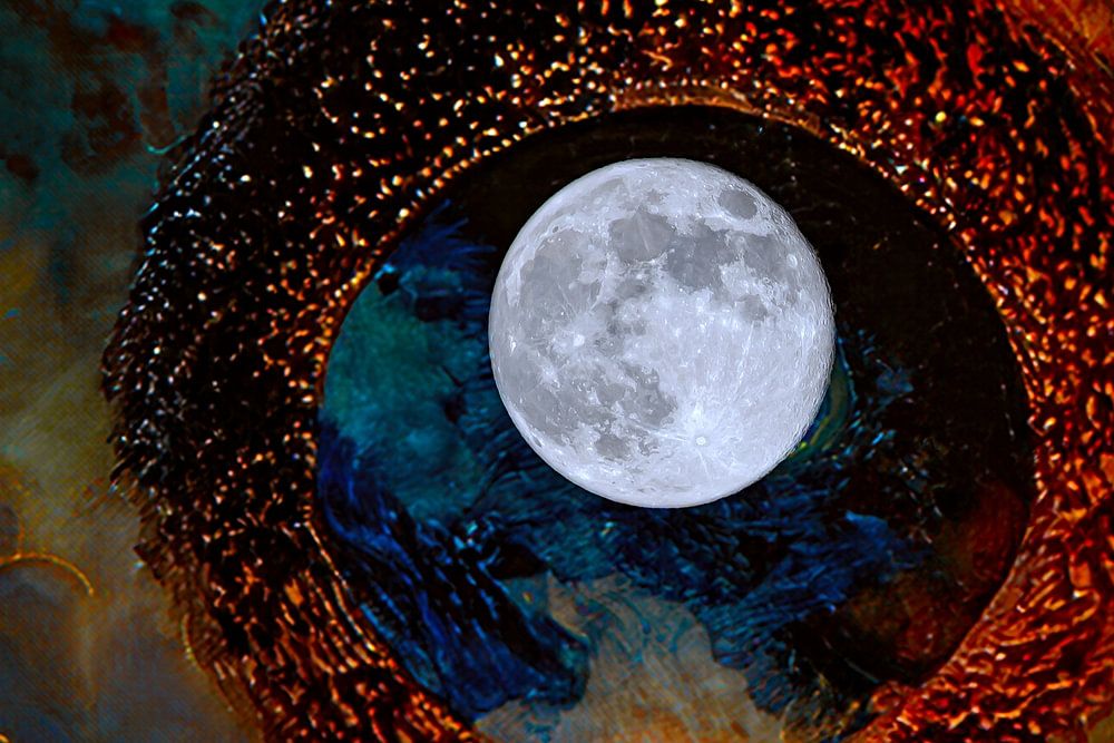 Intelligence artificielle : Les marches vers la lune . La lune a été photographiée par Photoart-Naegele en 2024. L'arrière-plan a été créé par intelligence artificielle.