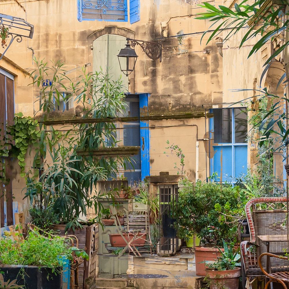 Travail photographique multicouche créé à partir de plusieurs photos avec des plantes, des portes, des volets et des fenêtres. Les photos de cet ouvrage ont été prises à Arles, dans le sud de la France.