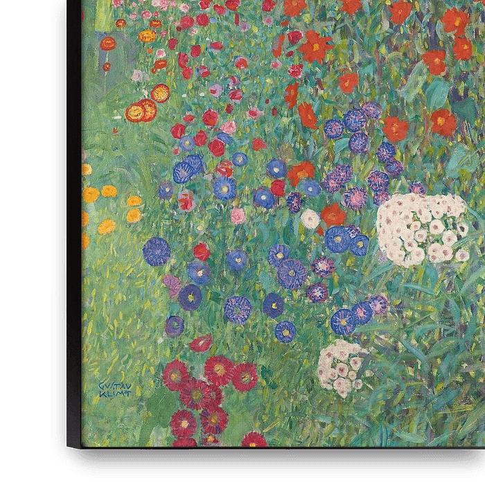 Achetez Jardin de la ferme avec tournesols, Gustav Klimt en tant que reproduction sur toile, aluminium, ArtFrame ou photographie (encadrée), impression d'art en haute qualité et tout format