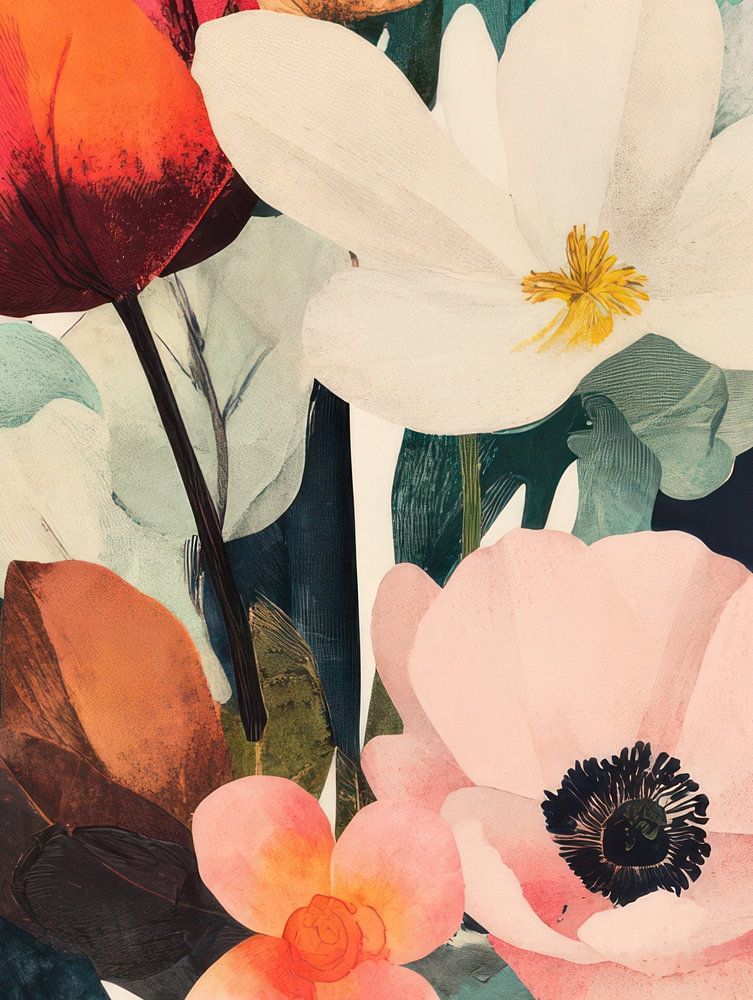 Cette composition florale fraîche et élégante apporte une touche moderne à l'art botanique classique. La combinaison de teintes vibrantes - telles que le rose tendre, le blanc éclatant, l'orange chaud et le vert profond - confère à l'œuvre une touche contemporaine. Les textures superposées et les lignes épurées créent un sentiment d'élégance et de douceur, ce qui en fait une œuvre d'art idéale pour les salons, les chambres à coucher ou les lieux de travail créatifs. Une ode à la floraison et à l'équilibre, parfaite pour ceux qui aiment le charme botanique dans un cadre minimaliste.