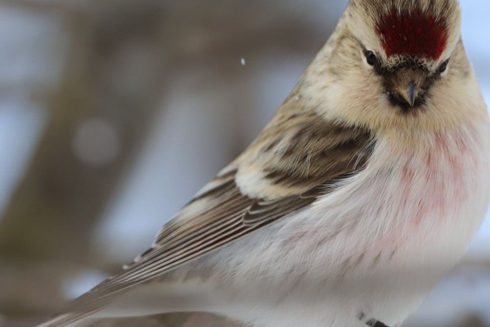 Femelle du grand merle dans le nord de la Suède. Cette photo a été prise à la fin de l'hiver. Le printemps arrivait à grands pas. Cette femelle a une tête rouge, mais les mâles du Sizerin des bois à grandes oreilles ont une poitrine rouge rosée pendant la période de reproduction. C'est merveilleux de voir comment les mâles et les femelles essaient de s'impressionner mutuellement. J'ai trouvé cette femelle belle dans son élégance. Elle regarde autour d'elle avec beaucoup de confiance. Pour tomber amoureux.