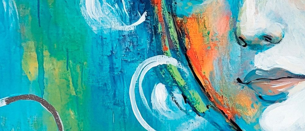 Un jeu harmonieux de couleurs douces et de formes fluides invite à la détente. Les yeux fermés et l'expression paisible évoquent la sérénité et la créativité. Ce tableau convient parfaitement à un salon ou à un bureau créatif, où il peut dégager un calme inspirant. Idéal pour créer une atmosphère sereine.