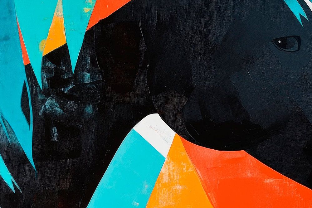 Une puissante tête de cheval noire, entourée de formes géométriques vivantes orange et turquoise, dégage de l'énergie et du dynamisme. Cette combinaison captivante de couleurs et de motifs apporte une touche moderne et artistique à chaque salon. Idéal pour enflammer les conversations et créer une atmosphère créative.