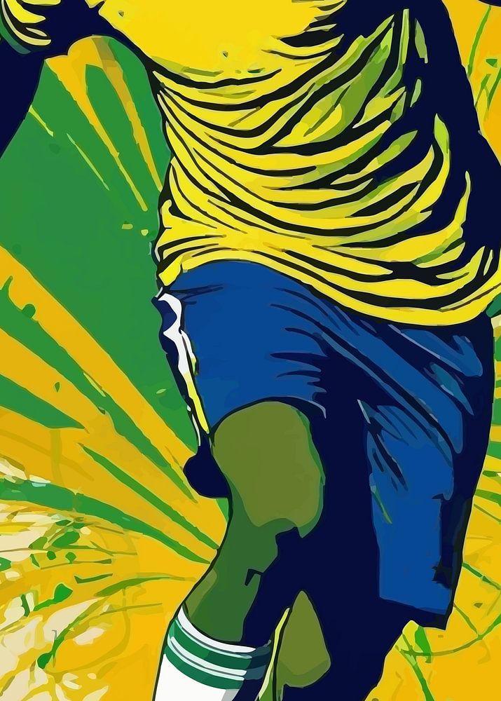 Acheter ce illustration Joueur de football brésilien en train de dribbler Silhouette par MIROKKU sur toile, aluminium, ArtFrame ou photographie (encadrée), impression d'art en haute qualité et tout format.