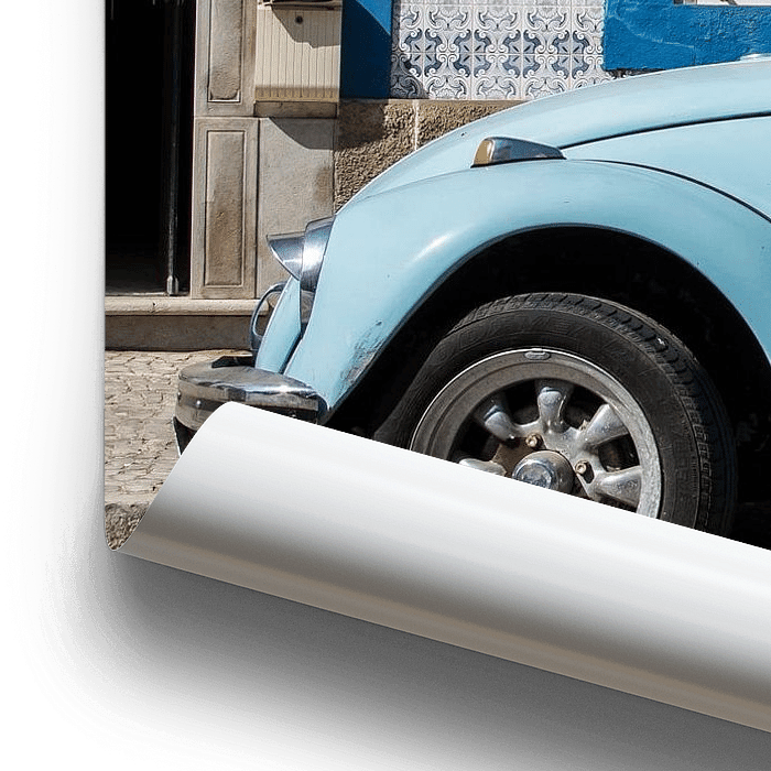 Ik was die dag tegeltjes aan het fotograferen in het zuiden van Portugal. Staat daar plots mijn favoriete auto. Volkswagen Kever en ook nog eens voor een blauw betegeld huis.