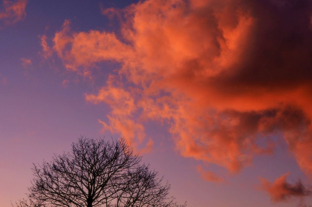 Terwijl het winterzonnetje bijna achter de horizon was verdwenen trok er nog een mooie roze wolk langs dit eenzame boompje