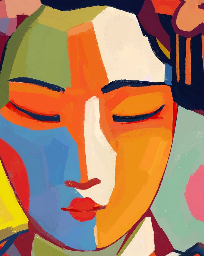 Un portrait contemplatif inspiré par l'esthétique japonaise, rendu dans des champs de couleurs fauvistes audacieux qui équilibrent la sérénité et l'intensité.