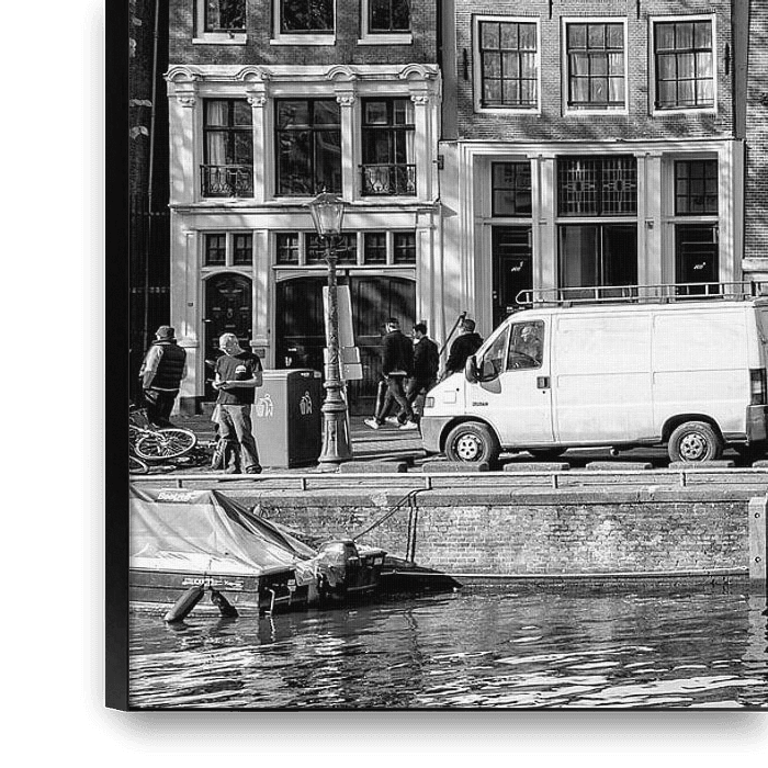 La Oudezijds Voorburgwal à Amsterdam. J'ai pris cette photo pour concevoir une invitation festive à l'achat du bâtiment situé au numéro 136 par NV Zeedijk.