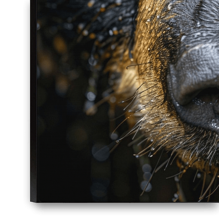 Plongez dans les profondeurs de l'âme indomptée capturée dans ce chef-d'œuvre montrant le regard intense d'un loup, enveloppé d'obscurité et de mystère. L'artiste a capturé l'essence de la beauté sauvage et de l'émotion brute avec une habileté et une précision exceptionnelles.