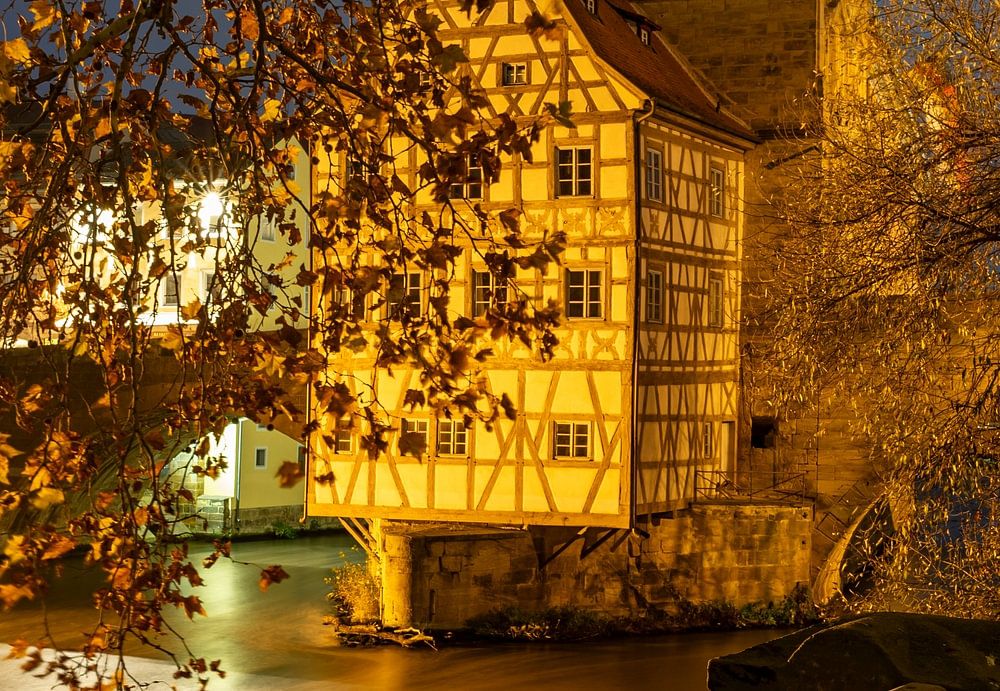 A propos de "L'ancien hôtel de ville de Bamberg en Bavière Franconie en automne Illuminé dans la nuit"
