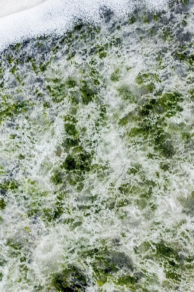 Au cours d'une semaine froide à Texel, je me suis promené le long de la mer des Wadden, j'ai grimpé sur les blocs de basalte et j'ai vu des algues marines s'étendre entre eux. Avec une température de -17 degrés Celsius, les algues sont devenues une œuvre d'art en combinaison avec la glace. Chacun peut en donner sa propre interprétation, cela me fait penser à une vue aérienne de montagnes sur la côte.