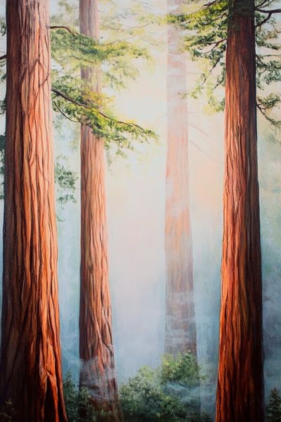 Acheter ce tableau L'aube dans la forêt de séquoias par Poster Art Shop sur toile, aluminium, ArtFrame ou photographie (encadrée), impression d'art en haute qualité et tout format.