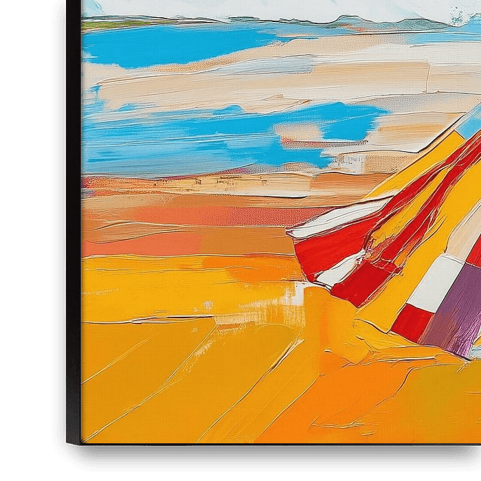 Ce tableau est une ode à la liberté estivale, à la sensation du soleil et du vent sur la peau, et à la beauté de regarder sans être vu. Abstrait moderne. Colorée.