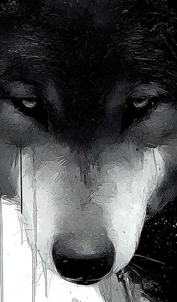 Le loup n'est pas entièrement visible, comme si une partie de son existence était encore cachée dans l'obscurité. Sa forme semble instable, oscillant constamment entre un corps solide et une ombre liquide.