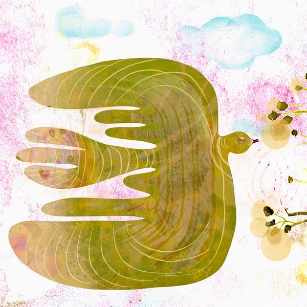 Achetez cette œuvre d'art d'oiseau L'oiseau vert par RAR KRAMER - Visual poet sur toile, aluminium, ArtFrame ou photographie (encadrée), impression d'art en haute qualité et tout format.