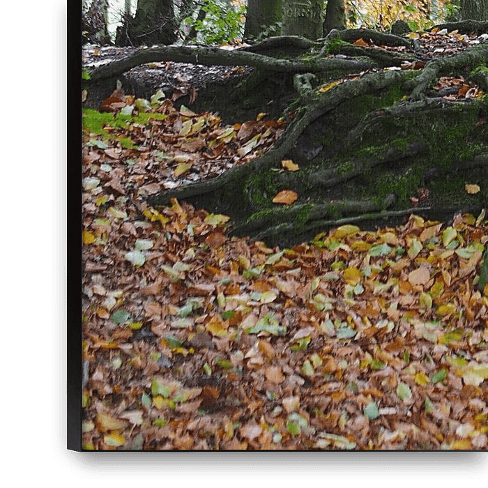 Les racines imposantes des arbres et les feuilles mortes caractérisent l'ambiance qui règne dans cette forêt des montagnes du Wiehengebirge.