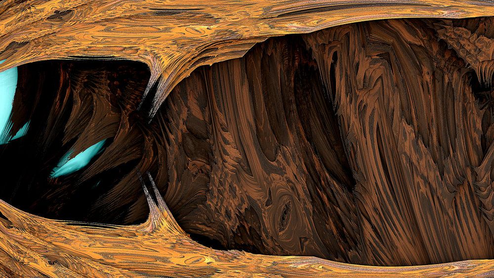 Entrée de grotte avec des troncs d'arbres tombés, infographie tridimensionnelle avec le programme gratuit Mandelbulb