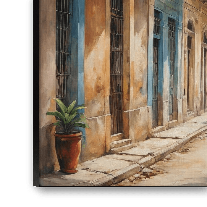 Le dynamisme et l'énergie de La Havane se reflètent dans cette scène captivante. L'architecture, avec ses arcs gracieux et ses bâtiments anciens, constitue une toile de fond parfaite pour la vie urbaine qui s'y déroule. Les voitures classiques ajoutent un sentiment de nostalgie, tandis que les passants ont un aperçu de la diversité et de la vitalité de la vie urbaine. Cette œuvre d'art invite à regarder plus loin, à découvrir les nombreuses histoires et expériences qui se déroulent dans ces rues.