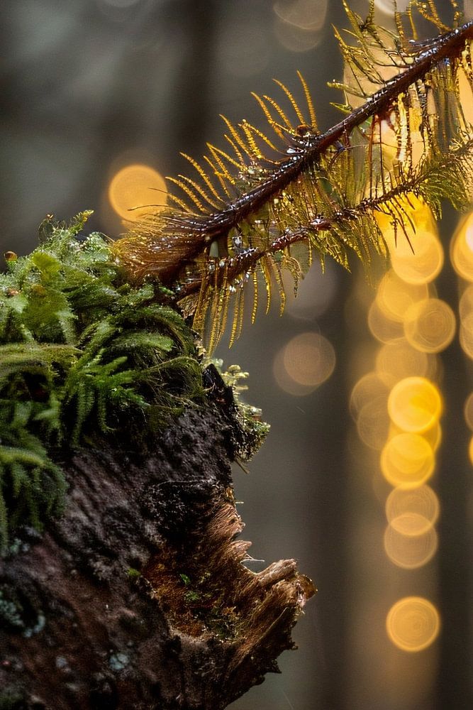 Découvrez la beauté sereine de la nature avec cette photographie à couper le souffle. Une plante solitaire jaillit d'un morceau de bois recouvert de mousse, symbole de résilience et de vie au milieu de la décomposition. La mise au point douce au premier plan conduit l'œil vers un bokeh hypnotique, créé par les gouttes de rosée qui scintillent sous la lumière du soleil. Les couleurs riches et terreuses et le contraste subtil créent un sentiment de calme et d'émerveillement, faisant de cette image un complément parfait à tout espace qui a besoin d'une touche d'élégance naturelle.