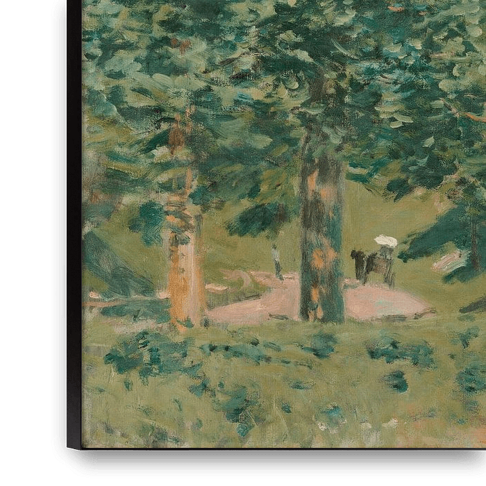 Un virage de la route avec de petites figures rapidement dessinées apparaît au milieu des arbres luxuriants et verts sur la gauche. A droite, le paysage s'ouvre sur la vue d'un vignoble situé sur une colline éloignée. Plutôt que de représenter simplement les particularités d'un lieu, Alfred Sisley a peint la glorieuse lumière dorée d'un jour d'été, scintillant dans les arbres et les longues herbes. Il a peint cette étude de paysage en plein air quelque part près de la route sur le chemin de Versailles à Saint-Germain. Les traits brisés de couleur brillante et les coups de pinceau impressionnistes qui servent de figures auraient défini le tableau comme une ébauche, mais Sisley l'a jugé complet et l'a présenté comme une belle oeuvre achevée.