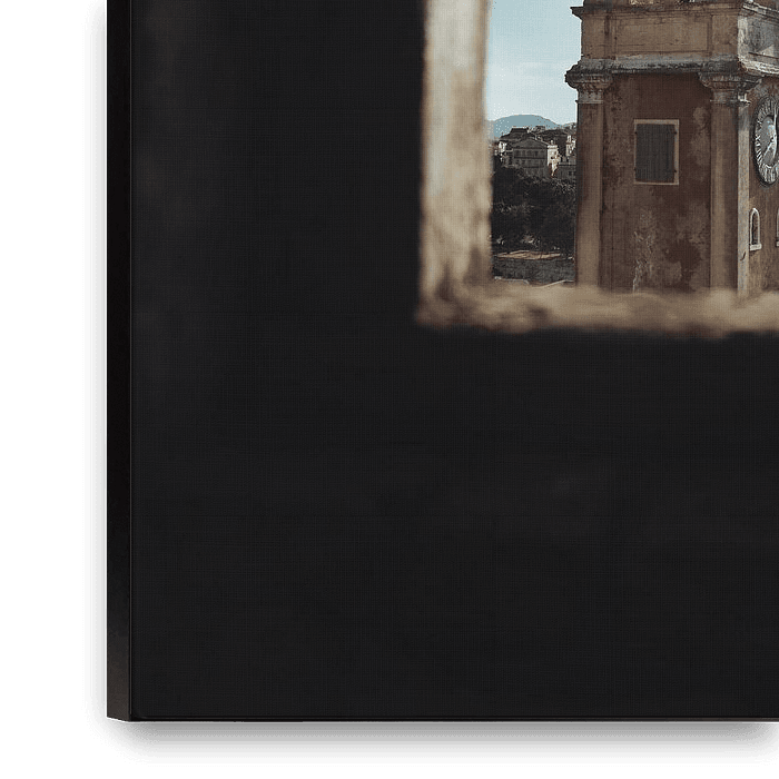 À travers les murs épais de la vieille forteresse de Corfu Town, j'ai photographié le clocher.