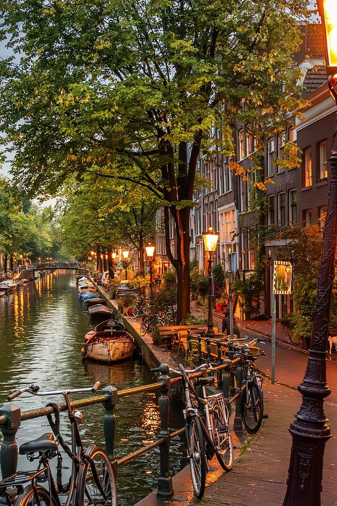 Cette photo suscite un sentiment de nostalgie et permet de rêver brièvement aux soirées tranquilles le long des canaux de la capitale néerlandaise. C'est un hommage à la beauté quotidienne d'Amsterdam, où les vélos, les canaux et l'architecture se rejoignent dans une image intemporelle et enchanteresse.