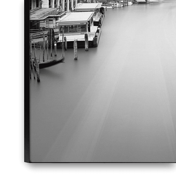 Vue du Grand Canal depuis le pont du Rialto. Longue exposition. Venise, Italie. Photographie en noir et blanc
