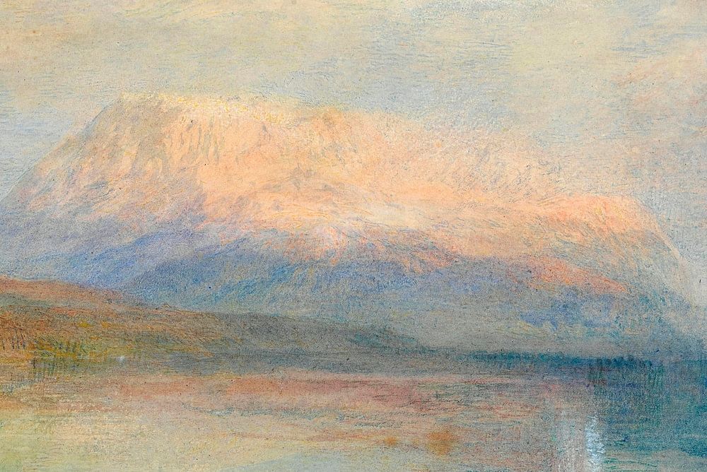 Le jeune J. M. W. Turner a effectué sa première visite en Suisse en 1802. Au cours de la décennie suivante, le paysage alpin a été le sujet de nombreuses peintures à l'huile et aquarelles. Une affinité durable avec les paysages spectaculaires des Alpes a inspiré ses visites ultérieures au début des années 1840. Les aquarelles tardives de Turner évoquent la sérénité et l'immensité du paysage suisse dans certaines des compositions les plus convaincantes et les plus rayonnantes de sa carrière. L'une des montagnes les plus célèbres de Suisse, le Rigi, domine le lac à l'est de Lucerne. Avec ses 1780 mètres d'altitude, il n'est pas l'un des plus hauts sommets des Alpes suisses, mais la vue magnifique et ininterrompue qu'offre sa situation isolée et la beauté des paysages environnants attirent depuis longtemps les touristes aventureux.