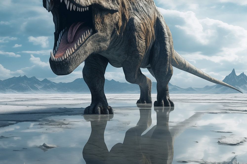 A propos de "Le Tyrannosaurus Rex s'aventure seul dans le lac froid de l'âge de glace"