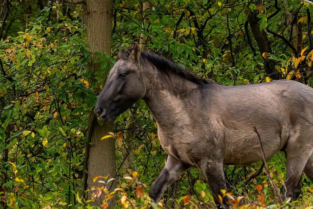 Soudain, il apparaît - un cheval Konik, puissant et libre, comme s'il sortait du tableau. Venu de la forêt, entouré des couleurs chaudes de l'automne, il se déplace dans le paysage avec une grâce naturelle. Une rencontre fortuite, capturée dans un moment de silence et d'émerveillement. Ce tableau exprime la magie de la saison et la beauté de l'inattendu. Parfaite comme décoration murale pour les amoureux des chevaux sauvages, de la lumière d'automne et de la splendeur de la nature.