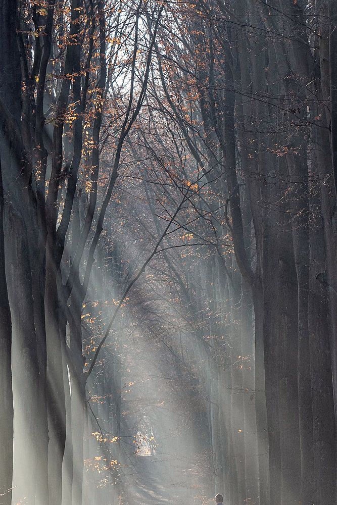 Un joggeur solitaire qui marche sous le soleil d'un matin d'automne.