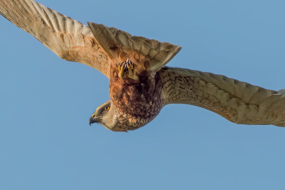 Il arrive qu'un oiseau soit mal placé pour la photo. Vous regardez la queue et la tête n'est pas visible. Mais s'il se retourne un instant, l'image devient puissante. Un busard des roseaux ne prie toujours que brièvement, contrairement à un faucon crécerelle par exemple. C'est pourquoi je suis heureux d'avoir pu capturer ce moment dans cette photo à la lumière du soir.