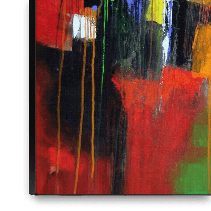 abstraite, peinture intensive en acrylique, décorative et contemporaine, peinture murale pour le bureau, le salon, pratique en rouge, vert, orange, noir, riche en contraste, bonne humeur, expressive