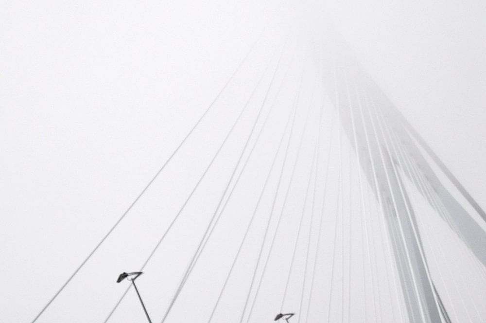 Le pont Erasmus (Le Cygne) disparaît dans le brouillard