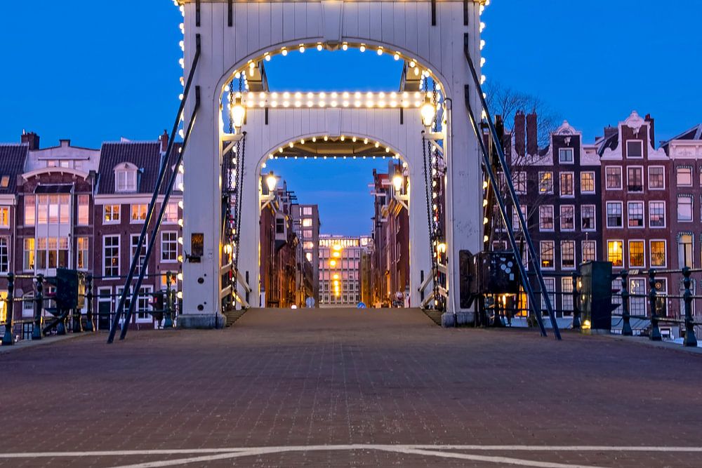 Le pont Skinny au coucher du soleil à Amsterdam aux Pays-Bas