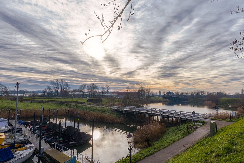 Achetez cette photo Le port et le vieux moulin Nooit Gedagt - Woudrichem (NL) par Mart Houtman sur toile, aluminium, ArtFrame ou photographie (encadrée), impression d'art en haute qualité et tout format.