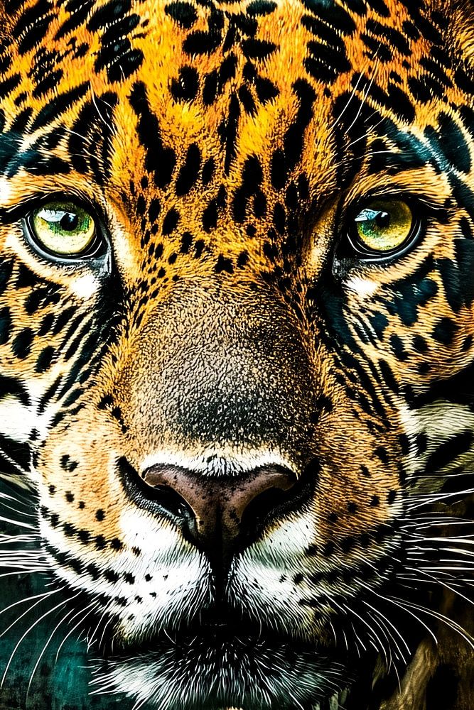 Ce dessin saisissant représente un magnifique léopard, capturé avec une précision surréaliste et des couleurs intenses. La combinaison du réalisme et d'un arrière-plan détaillé crée une œuvre d'art visuellement époustouflante. Ce motif allie force et élégance et s'intègre parfaitement dans les intérieurs modernes, tels que les bureaux et les chambres à coucher, où il peut s'imposer avec force. Les couleurs riches et les textures impressionnantes font de cette pièce un ajout unique à n'importe quel espace. Laissez cette œuvre d'art attirer l'attention et susciter l'admiration dans votre maison ou votre lieu de travail.