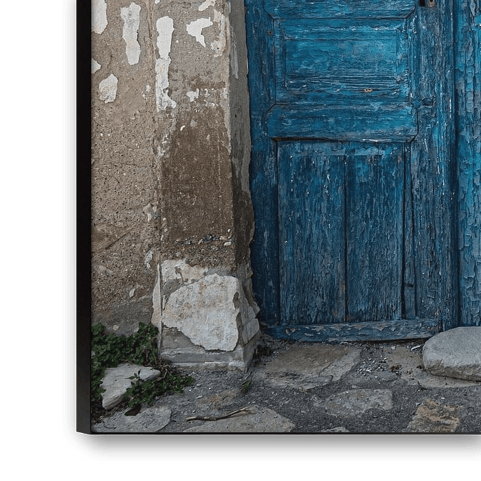 Belle couleur bleue que celle des portes et des volets de cette maison grecque. Un bleu plus profond que celui que l'on trouve dans la plupart des maisons grecques. Les couleurs contrastées du mur de pierre forment un bel ensemble.