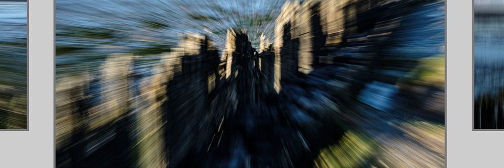Triptyque des vasières près de Moddergat. Photographié avec un mouvement horizontal, vertical et de zoom conscient pour obtenir une image artistique.