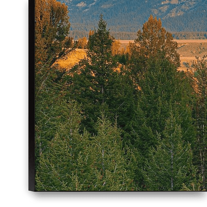 Photo grand angle 16:9 d'un lever de soleil au Snake River Overlook (le célèbre point de la photographie historique d'Ansel Adams) surplombant les pics enneigés des montagnes de Grand Teton dans le parc national de Grand Teton, dans l'État du Wyoming, au nord-ouest des États-Unis.