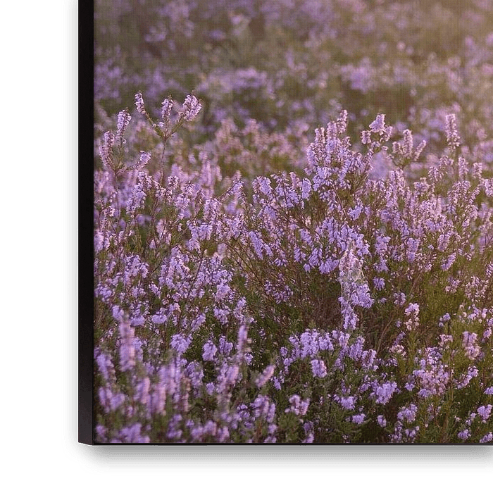 Bruyères en fleurs dans un paysage de landes sur les collines de Renderklippen aux premières heures du matin. La douce lumière du soleil illumine les bruyères roses en fleurs au lever du soleil en été dans la réserve naturelle de Veluwe en Gelderland, aux Pays-Bas.