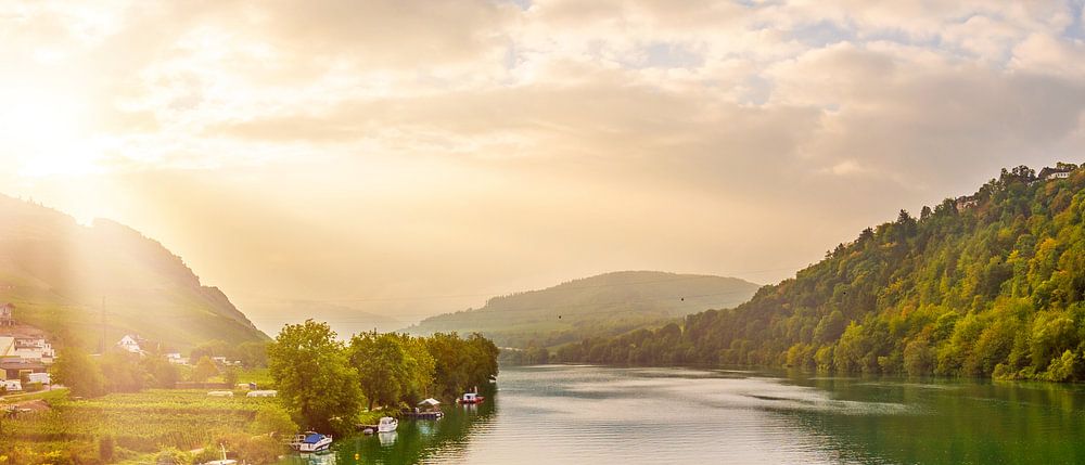 Achetez cette œuvre d'art de paysage Lever de soleil sur la Moselle par Günter Albers sur toile, aluminium, ArtFrame ou photographie (encadrée), impression d'art en haute qualité et tout format.