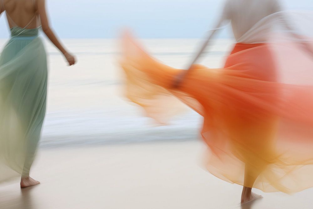 Portrait dynamique de deux femmes sur la plage.