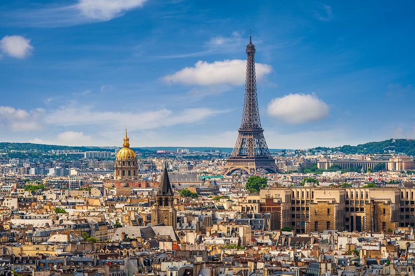 Ligne d'horizon de Paris, France, avec la Tour Eiffel et de nombreux toits historiques dans le centre de la ville